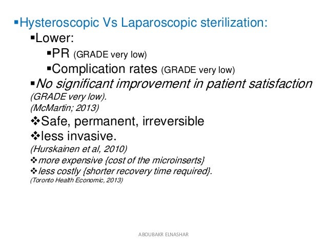 Sheet “Endometrial Ablation”. Risks of Hysteroscopy CONCLUSION Laparoscopy and hysteroscopy allow physicians to diagnose and correct many gynecologic disorders on an outpatient basis. Patient recovery time is brief and significantly less than the recovery time from ... Read Full Source